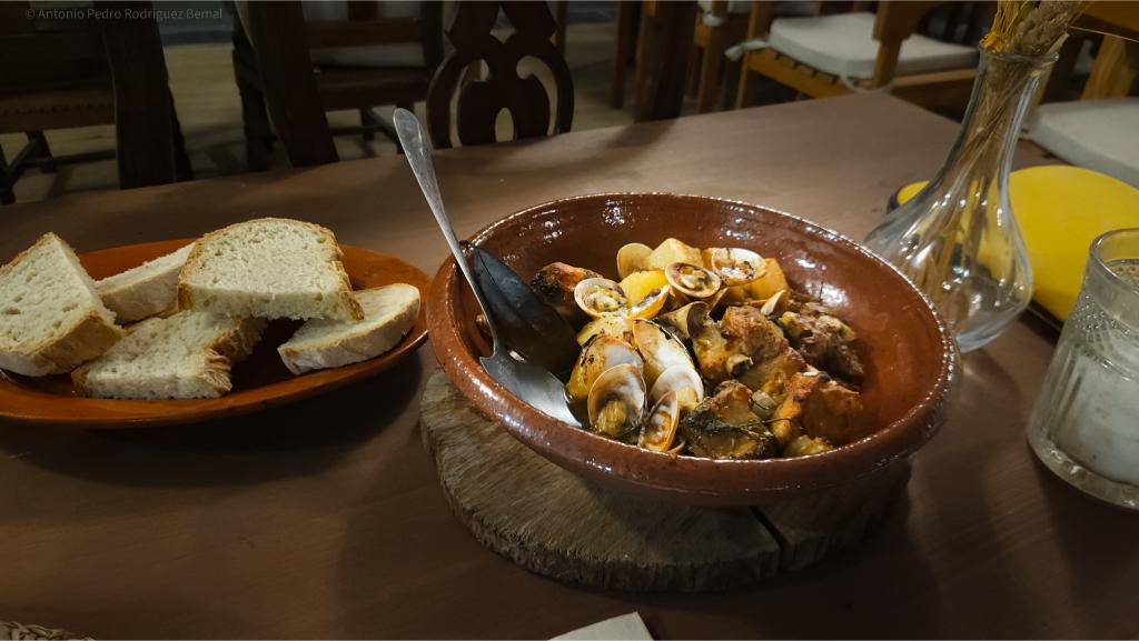 Cuando hice la reserva pensé que la hacía para un restaurante al uso. Pero no. Se trataba de un gran comedor situado en una estancia exterior a la casa de huéspedes. En su interior sólo había varios comensales. Una familia angloparlante en una mesa grande y una pareja portuguesa en una mesa mediana. Yo fui el último en llegar, acostumbrado a mis horarios españoles. El servicio lo componía una única persona, que rondaba la treintena, que hacía de maître, camarero, sumiller y chef. Un factotum culinario en toda regla. Respondía al nombre de Ricardo y lucía un bigote francés, con puntas afiladas en dirección al techo, apuntaladas con fijador. Como si me estuviera esperando, nada más entrar se dirigió a mí en una suerte de español, gramaticalmente correcto combinado con un ligero acento portugués. Me indicó donde estaba mi mesa y me anunció que mi plato ya se estaba haciendo. Me pareció muy exótico el servicio. Vestía una especie de delantal que cubría una ropa informal. Calzaba zapatillas deportivas. La informalidad contrastaba con un trato exquisito hacia los comensales. Departía con cierta fluidez en inglés y español y, por supuesto, en portuqués. Como él mismo había preparado el único plato del menú, podía dar toda clase de detalles sobre ingredientes y procedencias. El Alentejo (Alémtejo), etimológicamente “más allá del Tajo” (além-Tejo) es la región más extensa del país vecino y, a la vez, la menos densamente poblada. La región presume de una rica gastronomía que va más allá de las conocidas “migas a alentejana”, una auténtica explosión nuclear de calorías que conviene probar antes de padecer enfermedades coronarias. Y también de abundantes y ricos caldos, que difieren en aroma y color según la variada composición de sus suelos.