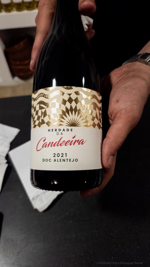 Dada mi ignorancia alentejana me dejé recomendar por el factotum, que me indicó el vino apropiado para el único plato que servía. Herdade da Candeeira Superior Tinto 2021.